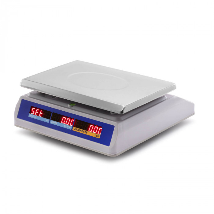 Результаты выводятся на два LED-дисплея, расположенных на противоположных сторонах весов. Итоговые цифры хорошо видны и продавцу, и клиентам. На индикаторах «МАССА» И «ЦЕНА» предусмотрено 5 разрядов индикации, на индикаторе «СТОИМОСТЬ» - 6 разрядов. Размер индикаторов – 20*12 мм.