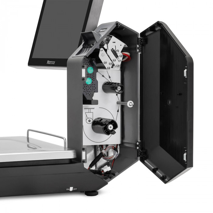 Чем проще интерфейс весов с печатью этикеток, тем он удобнее для покупателей. Оптимальным вариантом является устройство с сенсорным экраном, на котором присутствуют большие кнопки. Корпус прибора должен быть устойчивым и вандалостойким. M-ER 725 SELFPRINT соответствует этим требованиям.